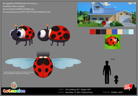 Senior CG designer on Cocomelon Lane at Atomic Cartoons. Works include character/prop concept, design, colors, turnarounds, expressions, wardrobes. Had the opportunity to help out the Art Director in reviewing client notes and on giving feedback through drawovers or paintovers.